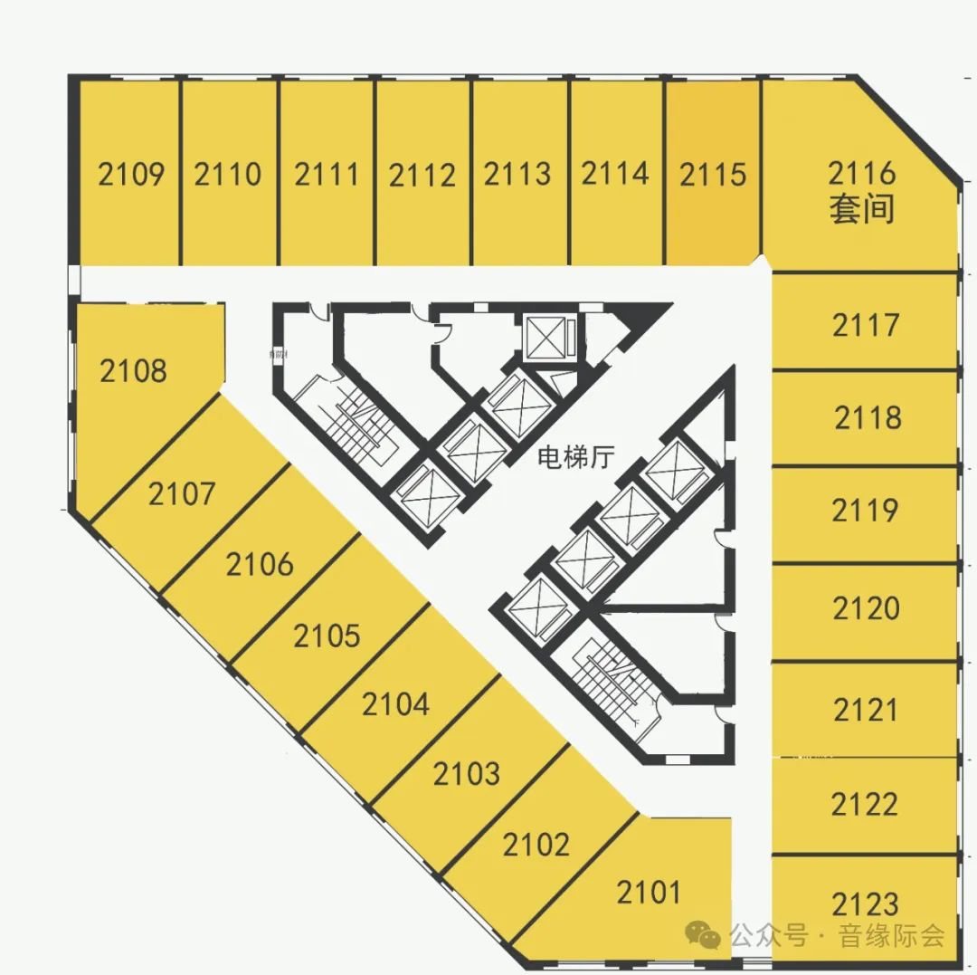 21楼提供23间展房,包括1个套间和22个单间。