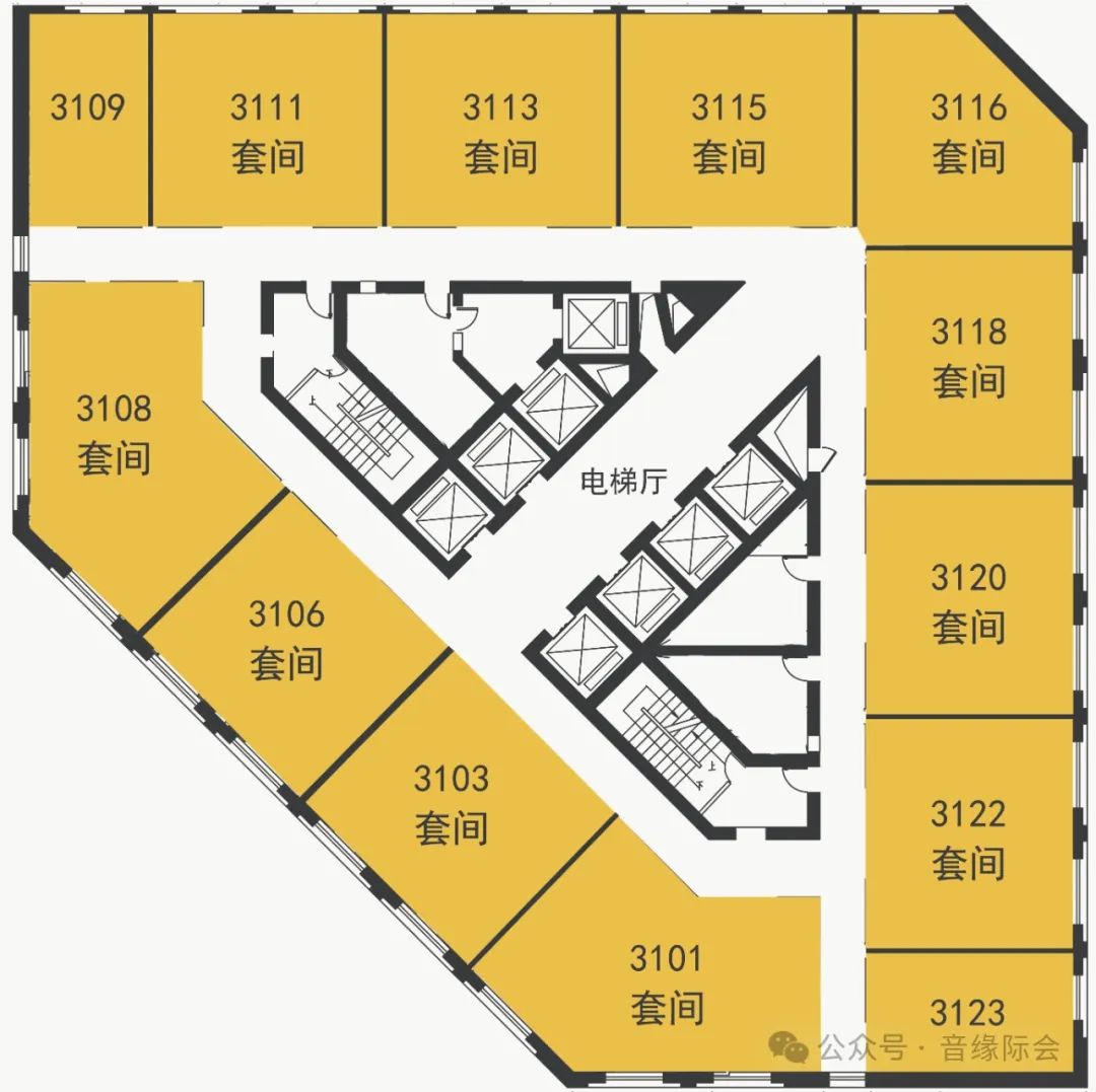 31楼提供13间展房,包括11个套间和2个单间。