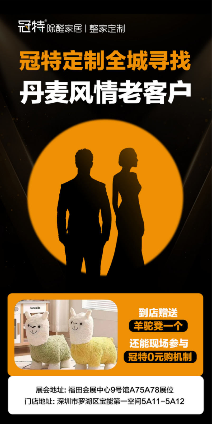值得一提的是如今的冠特是由“丹麦风情”更名而来,品牌名的改变带不走冠特对每一位客户的承诺。不忘初心,冠特始终想为您带去高品质家居体验,所以本次展会,冠特诚挚地希望如果您曾选择过丹麦风情这个品牌,您就是我们的冠特的老朋友,我们在全城寻找您的身影,4月13-14日深圳家装节冠特定制以全新的姿态在福田会展中心9号馆期待您的到来。