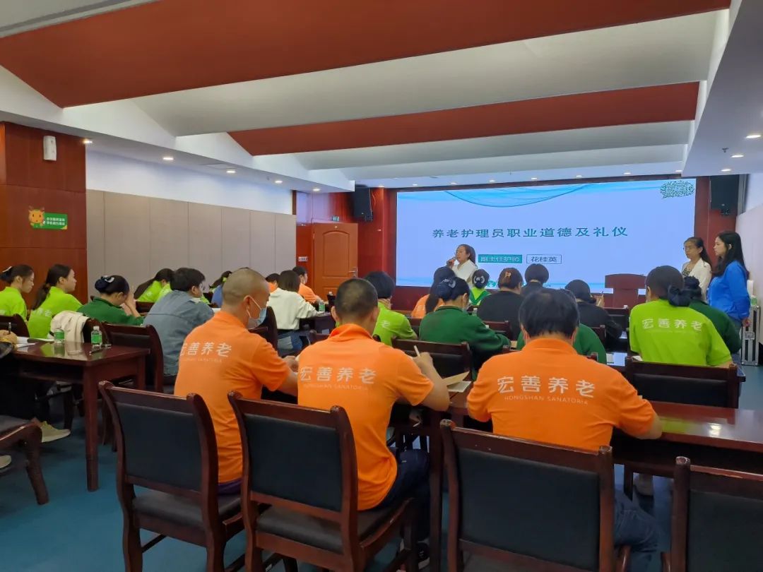 宏善养老通过定期培训和内部竞赛等方式,促进护理团队在学习提升、不断进步,优化人员知识结构,构建人才保障体系。保证始终以高质量的护理服务造福长者,助力养老事业高质量可持续发展。