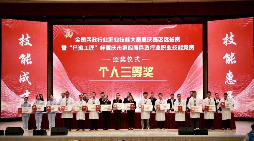 为进一步完善养老服务体系,提升养老护理员职业技能水平,展示养老护理行业专业化、人性化、标准化、规范化整体形象,助推全市养老护理人才队伍建设。4月3日,为期3天的全国民政行业职业技能大赛重庆赛区选拔赛暨“巴渝工匠”杯重庆市第四届民政行业职业技能竞赛完成各项赛程,在重庆城市管理职业学院闭幕。