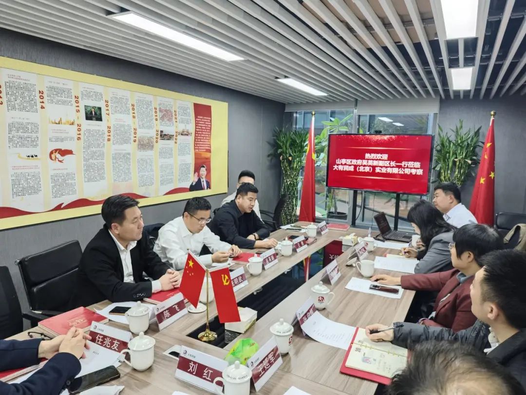 4月2日,副总经理李凯与市、区人社局相关领导洽谈项目建设相关事宜。