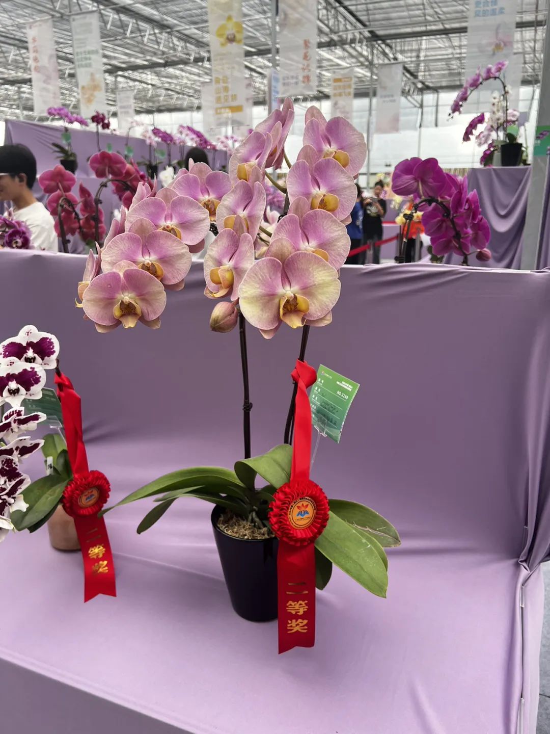 自从知道有这个展之后就想去了,虽然早早在网上看到了关于冠军花的争议,说冠军不好看,但是现场并不止这一盆花,其他花肯定也很好看。去了之后,果然没让人失望。展览在菊花湾农业园的一个展厅里。农业园里有一些兰场,可以买花。展览里的花不售卖。一进来先看到的是安祖公司的出品,实物比网图好看得多。以各大直播间猛猛收花闻名的糖姐也来参展了,有不少好货。大王家的镇馆之宝在展览中得到了珍奇类冠军。有人为了看这颗花专程到佛山~苹果拍部分花有点失真,比如这颗和下面的照片,亮度拉高之后过于饱和了。佛山有这么一片兰场宝地,真不错。希望培育出来的花越来越美,祝销售成绩年年高升!