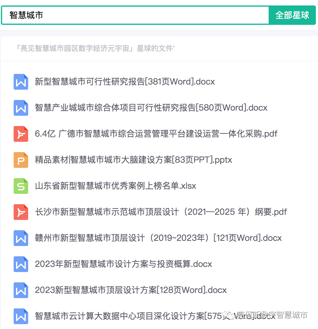 可加入智慧城市星球智库,了解全国各行业各领域数字化项目顶设建设资料。