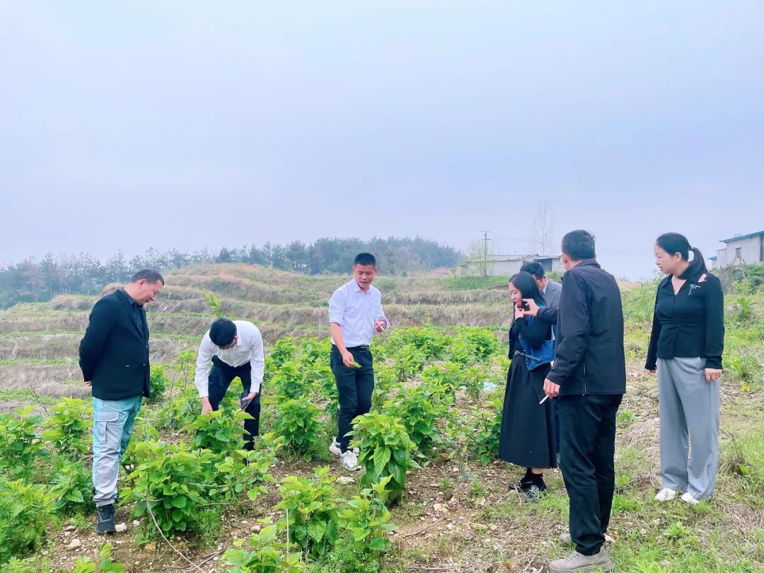 座谈会结束后,在相关负责人的陪同下,商会一行分别前往位于枫树岭村的黄桃种植基地、桑蚕养殖基地,葡萄园种植基地进行实地考察。眼前的景象让他们深感震撼,满目绿意,生机盎然,整齐排列的黄桃树,枝头盛开着的桃花;桑树郁郁葱葱;整齐排列的葡萄架,无不展示着家乡农业的蓬勃生机,预示着丰收的希望。