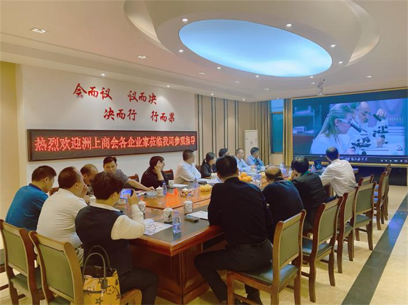 江西德上科技集团董事长周彦如带领一行人参观公司厂区、德上科技集团展厅、5G智慧工厂。了解了德上集团的发展历程、药品研发、产品销售等情况。随后一行人在公司会议室开展座谈会议,与会的商会会员们围绕企业发展进行了交流讨论,针对当前发展中面临难题共同探究解决之道。会议指出,商会会员们要加强互通有无,进一步深化合作,提升资源共享,共谋发展。会议强调,洲上商会要秉承慈善友爱的理念,关爱社会弱势群体,积极承担社会责任,充分发挥商会回馈社会的优势与作用。