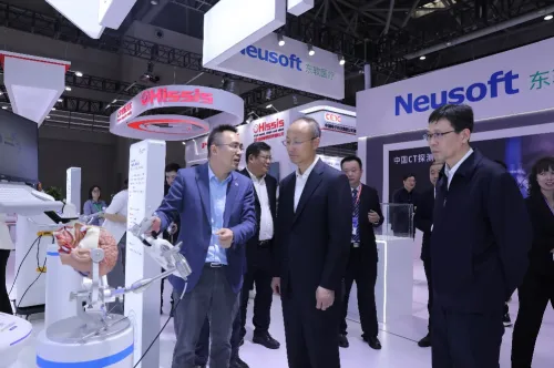 工业和信息化部总经济师高东升在大会开幕式致辞中介绍,2023年,我国医疗装备规模以上企业实现营收超过5000亿元,连续十年保持快速增长态势。产业创新全面提速,一批自主创新产品获批上市,体外膜氧合机等高端医疗装备,填补国内空白。大功率高热量球管等关键零部件,实现装机应用、心磁功能成像装备等产品不断突破,供给能力持续提升。累计1800多款产品入选优秀医疗装备产品目录,骨科手术机器人、肠镜手术机器人等5G远程手术已累计开展四百多例,最远跨越5000公里,有力促进优质医疗资源惠及边远地区群众。企业培育成效显著。2023年新增六家上市企业,深圳迈瑞、上海联影等企业进入全球医疗器械100强,新培育65家国家专精特新小巨人企业。