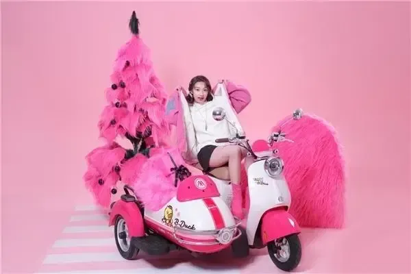 爱玛电动车早些时候与全球知名的小黄鸭B.Duck进行了跨界合作,推出了联名款边三轮。