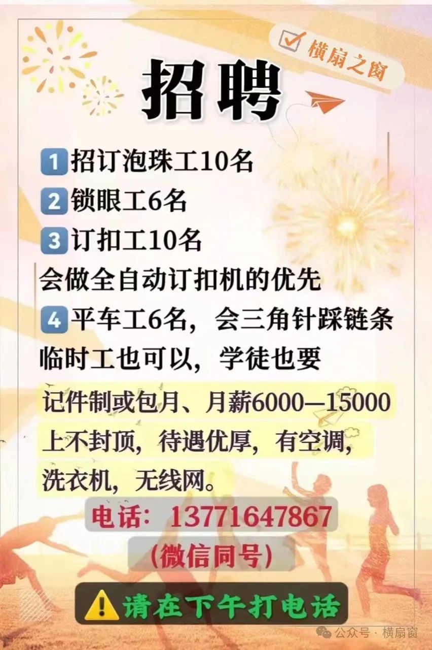 1⃣️:招国产大电脑上机工数名,2⃣️:招国产挡车工数名 ,3⃣️:招零工数名