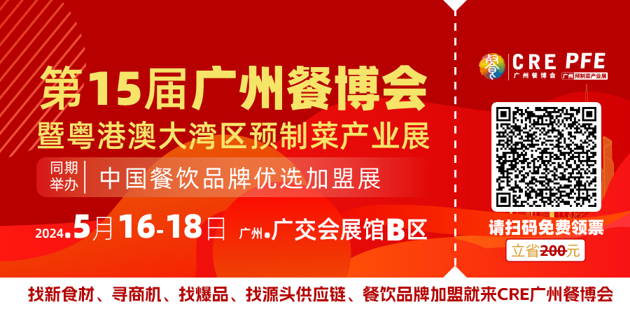 领取CRE·2024第15届广州餐博会暨大湾区餐饮预制菜产业展免费参观入场门票