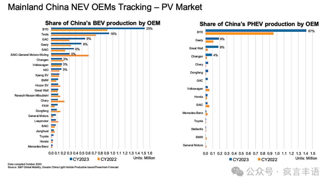 (在BEV市场中,前三名占比达到50%;在PHEV市场中,前三面占比超过85%。赢家通吃的局面正在形成,虽然,我们无法用ICT领域中的发展趋势来比喻汽车领域中的发展;