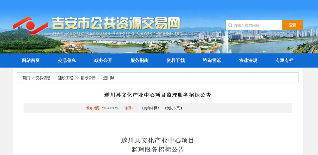 近日,遂川县文化产业中心项目监理服务招标公告发布!