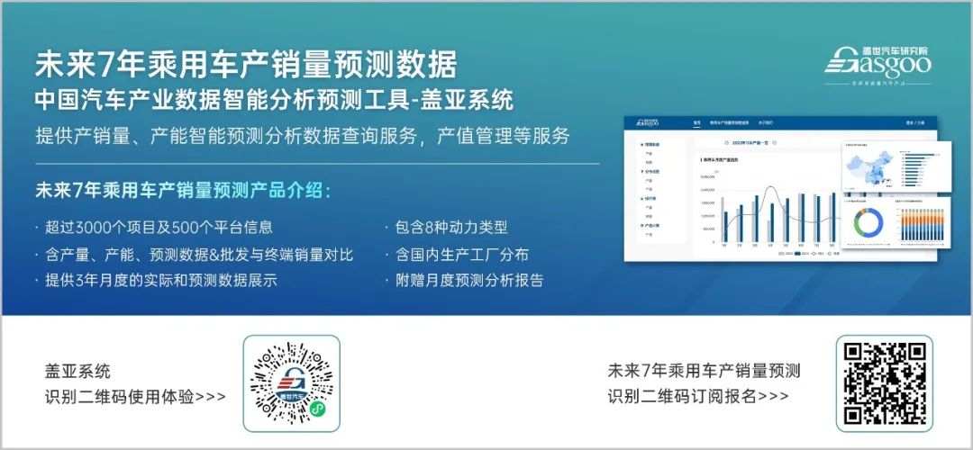 以上预测数据来自盖世汽车盖亚系统,如需获取未来7年乘用车产销量预测数据,欢迎扫码订购