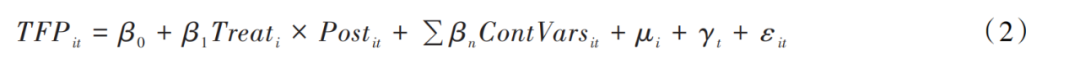 本文将样本期内至少进行过一次数实产业技术融合的企业作为处理组,将其他企业作为对照组,建立双重差分模型(2):