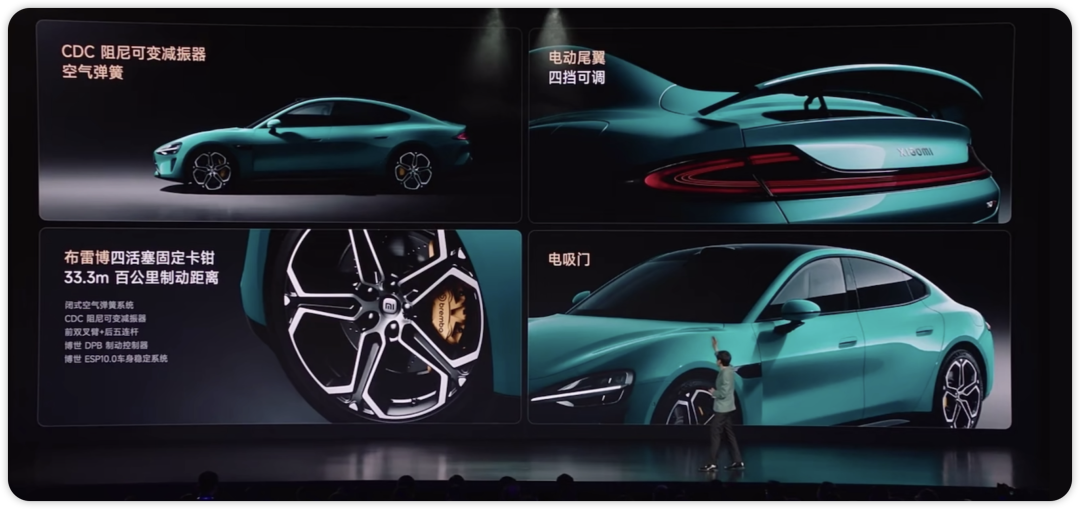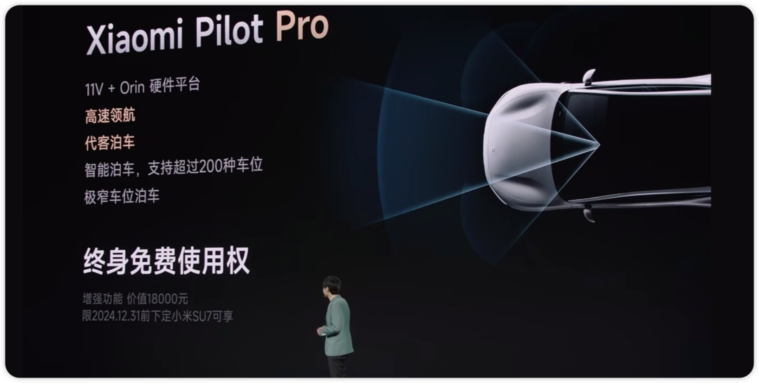 最后一部分,我们再聊小米SU7一个短板——智能驾驶。小米SU7作为带着北京希望去整个北方工业的后起之秀,目前要和世界一流的电动车品牌特斯拉竞争还差一个关键因素,就是智能驾驶。作为一辆智能汽车,在SU7发布会上,按照雷总以往发布会的风格,如果小米汽车在现在的智能驾驶但凡能够拿得出手,势必会对这个功能进行浓墨重彩的介绍,突出自己的科技属性。这次手机支架的介绍远远超过了对智驾的篇幅,就说明在智能驾驶的领域小米和特斯拉,哪怕是华为,小鹏都还有一大段的距离需要追赶。