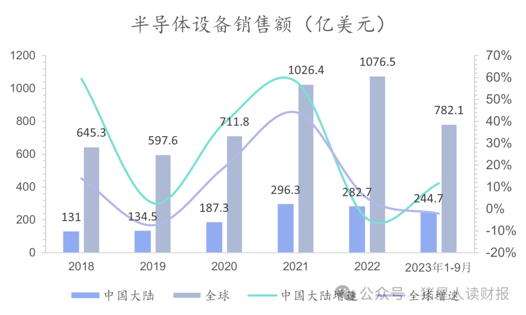 另外,公司还深耕电子元器件和真空及锂电装备领域,其中,据中商产业研究院发布数据,我国电子元器件市场规模自2017年68,909亿元增长至2022年149,277亿元,复合年均增长率为16.72%。2023年1-6月市场规模达72,273亿元,同比增长3.2%,预计未来将持续增长;锂电设备规模更是随着中国锂电池出货量爆发性增长而大幅增加,据GGII数据,中国锂电设备市场规模由2019年229亿元上升至2022年1,000亿元,年复合增长率为63.45%,处于快速增长阶段;由于公司的电子元器件、真空锂电装备常年来业务占比较低,截至2023年半年报,公司电子元器件、真空锂电装备仅占比12.57%,并非我们要重点关注的对象,接下来的篇幅重点描述半导体设备行业的发展情况。