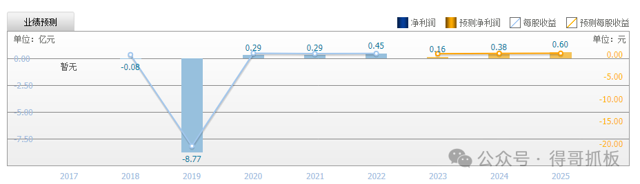 预测2023年每股收益 0.05 元,较去年同比下降 50%, 预测2023年净利润 0.16 亿元,较去年同比下降 65.2%