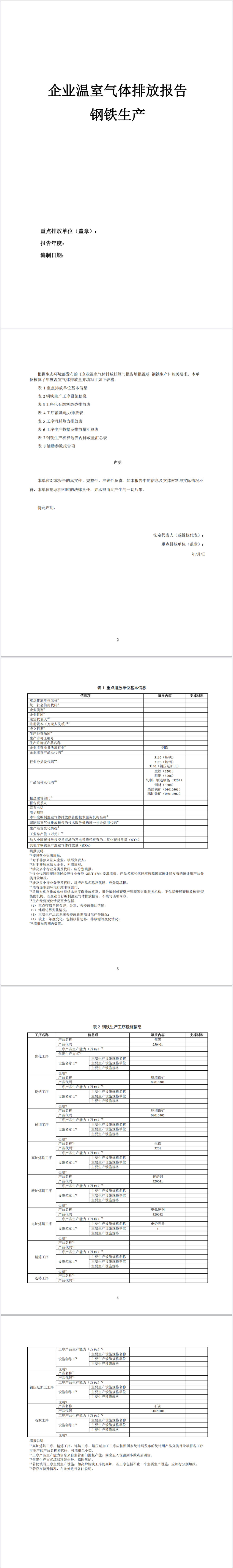 钢铁碳排放数据填报模板