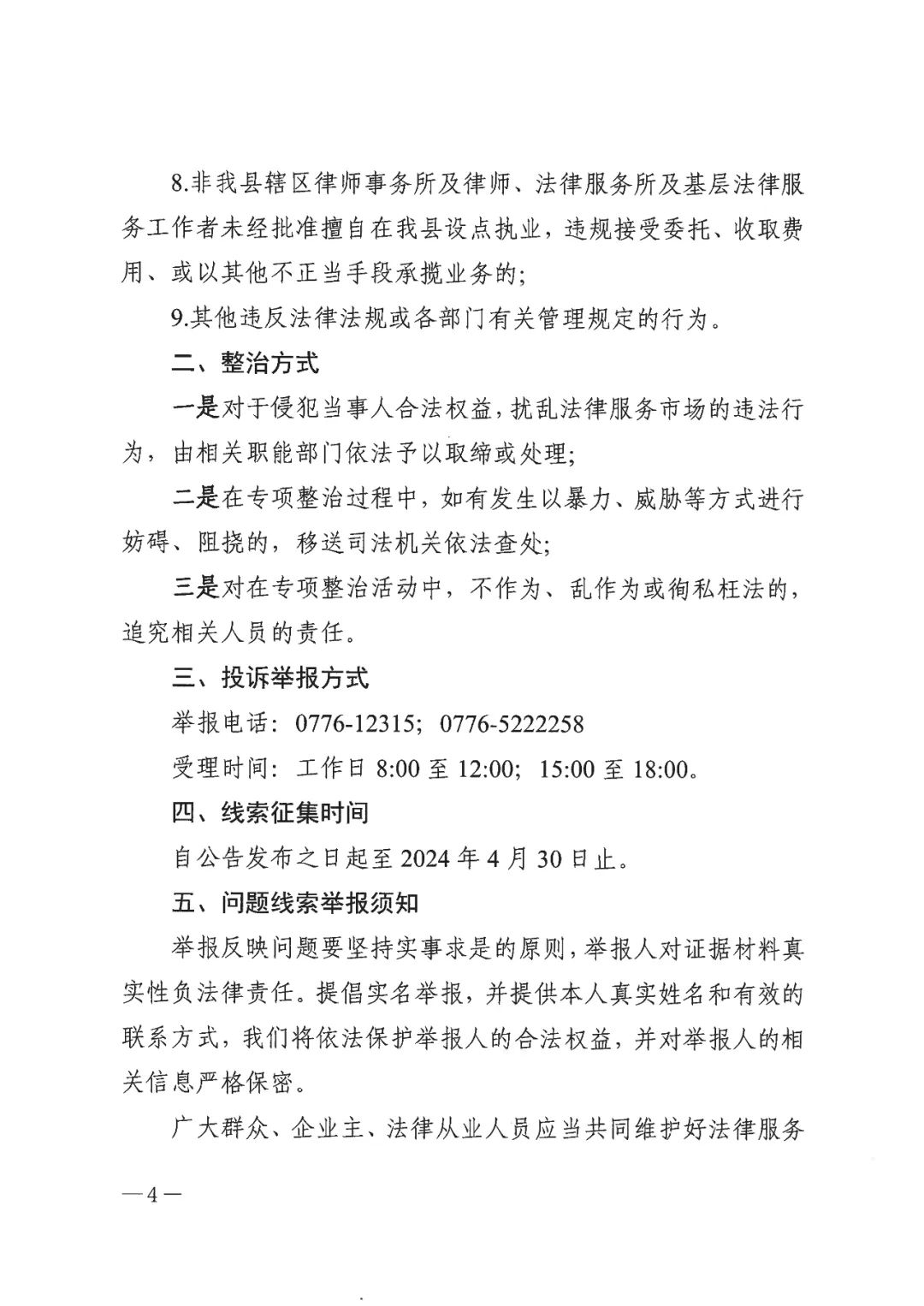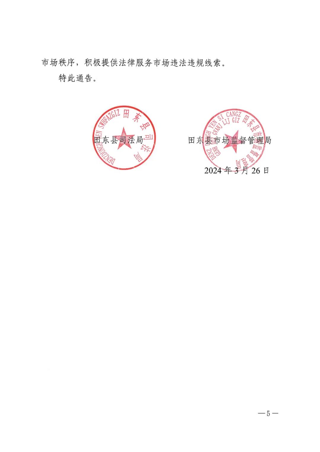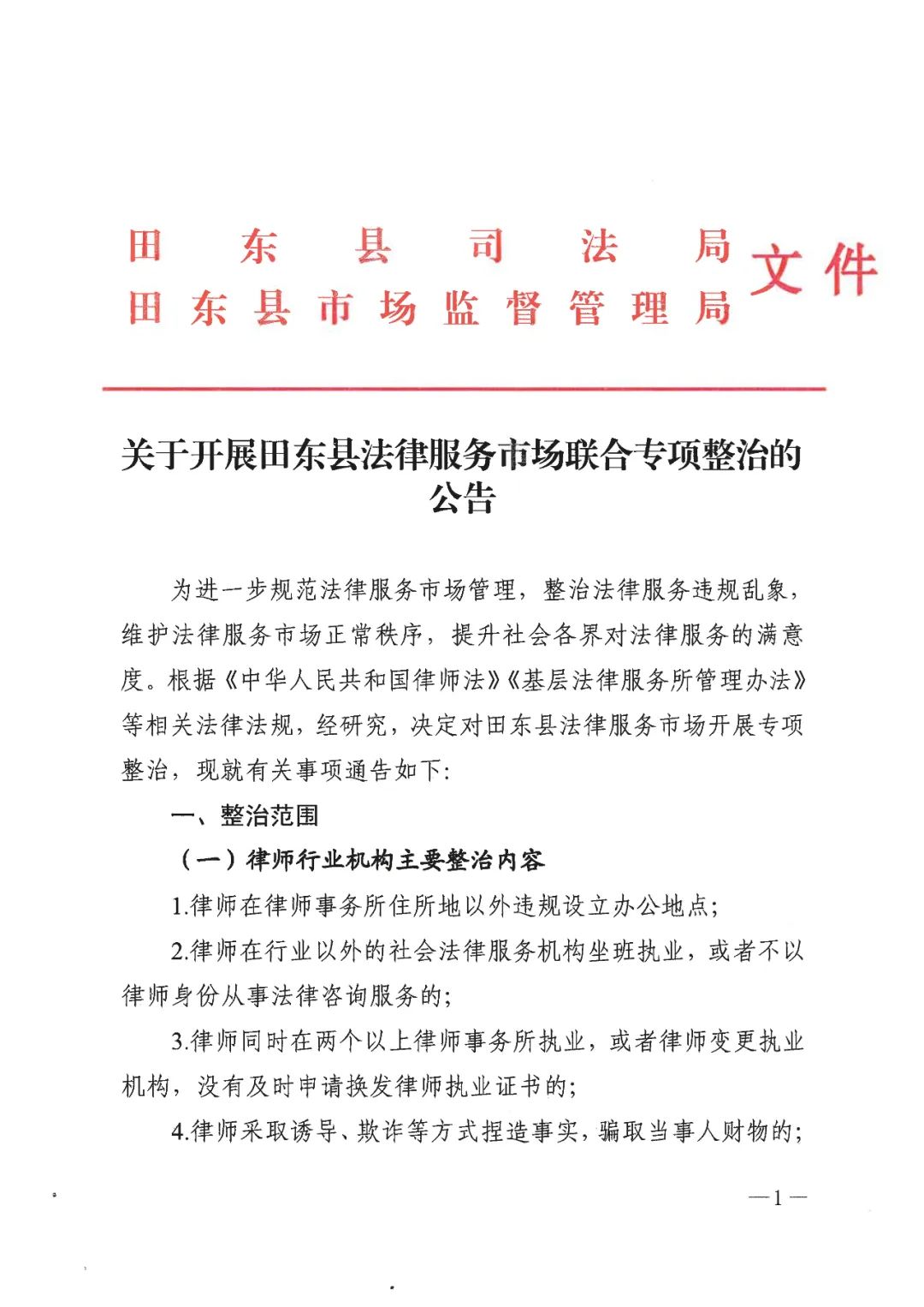 关于开展田东县法律服务市场联合专项整治的公告
