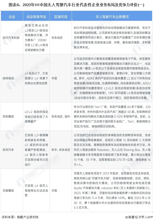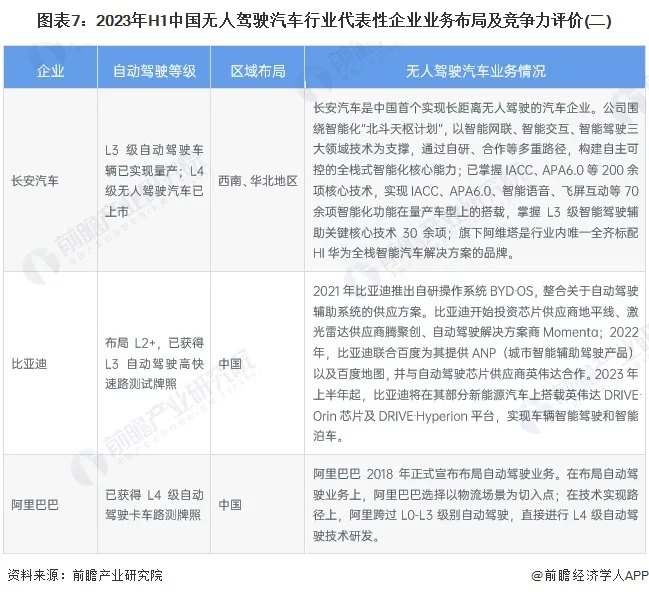 无人驾驶汽车行业竞争梯队;无人驾驶汽车行业市场分析;企业业务占比等;