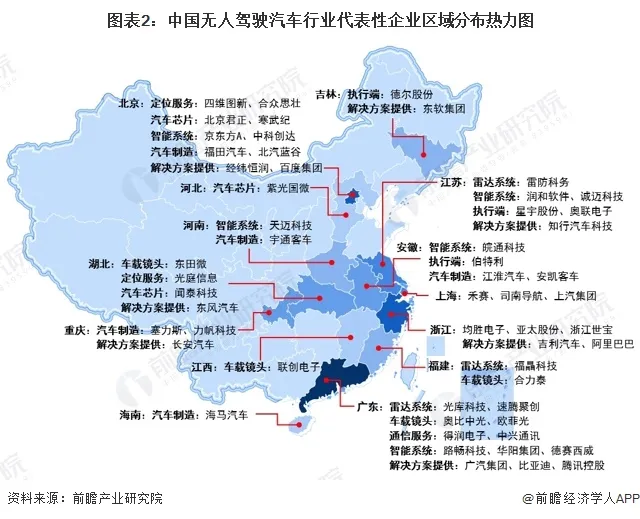 从无人驾驶汽车行业代表性企业的区域分布来看,企业主要布局在广东、浙江、北京、江苏等中东部地区,尤以广东分布最为集中;东北地区也有部分企业分布,西部地区代表性企业分布相对较少。