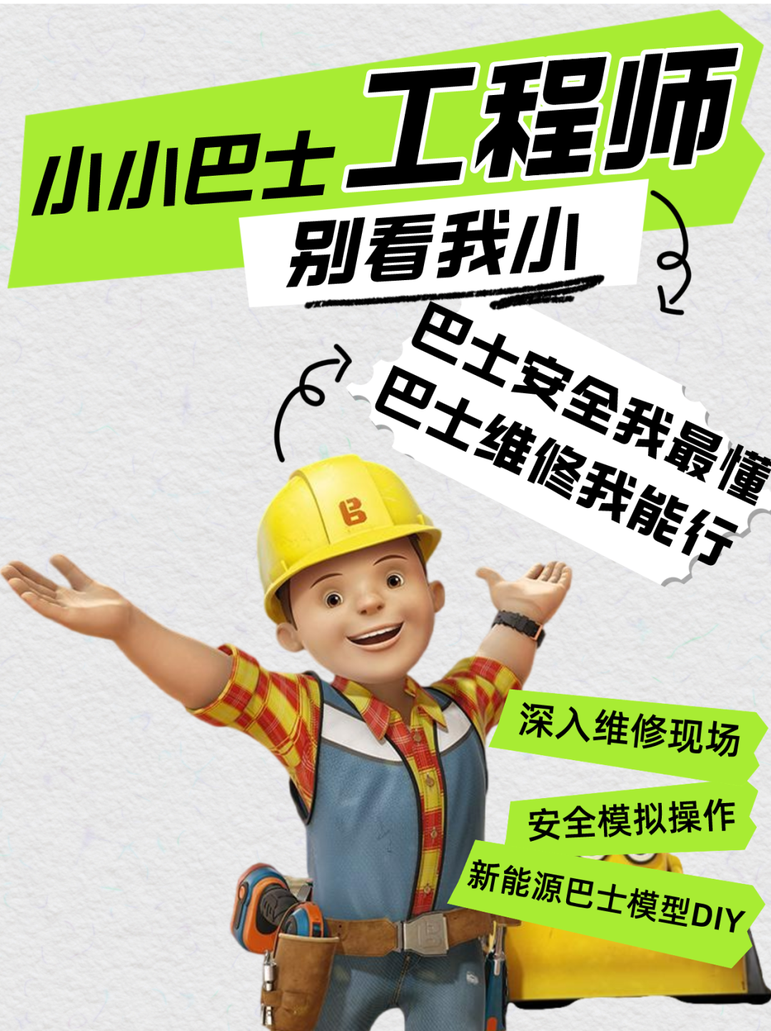 小小维修工:进入巴士集团后勤保障和维修区,学习电动车工作原理,亲自动手进行各种有趣的体验get力学和电路原理