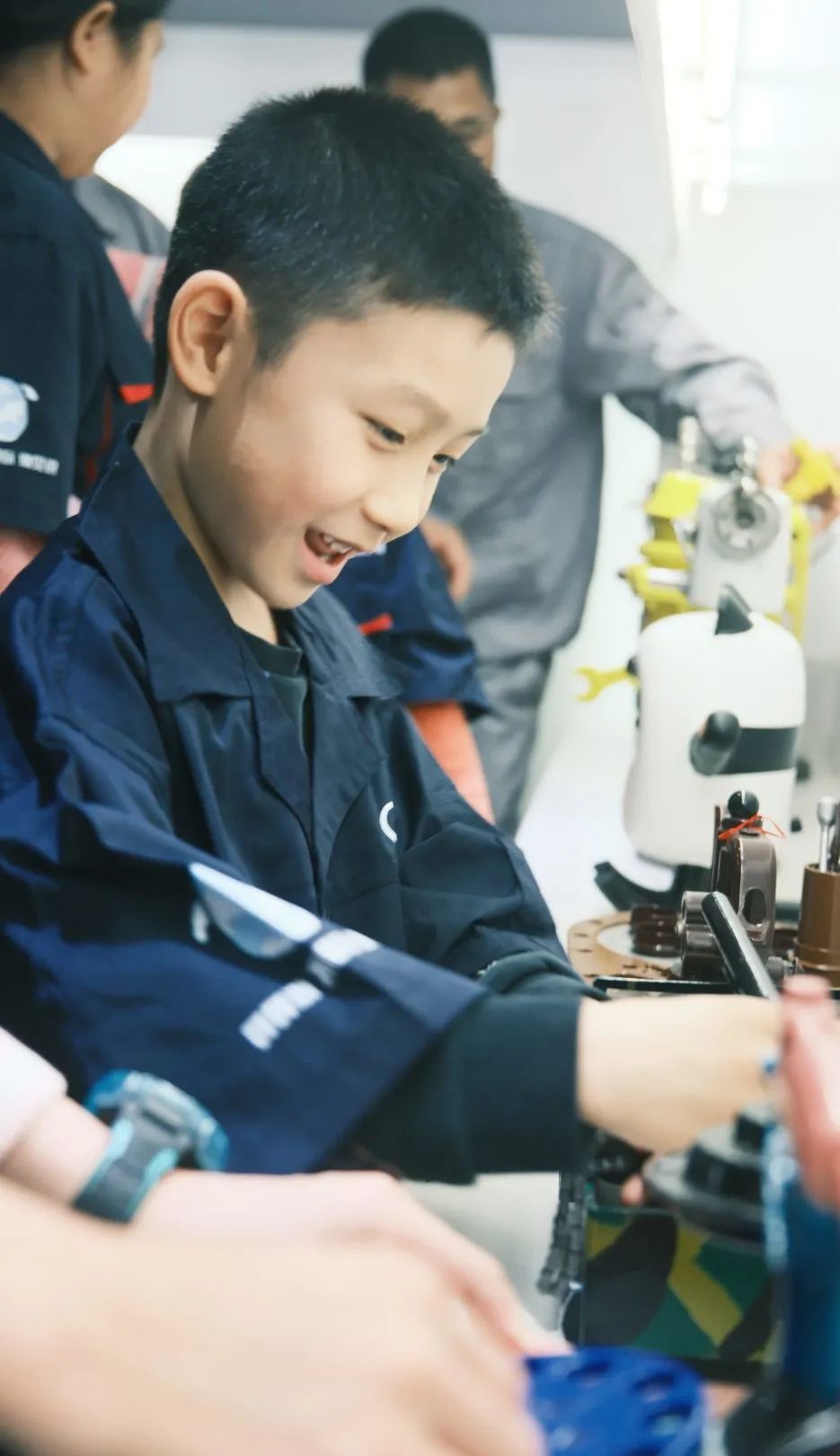▼孩子换上特别定制小小工程师的衣服,特别有仪式感
