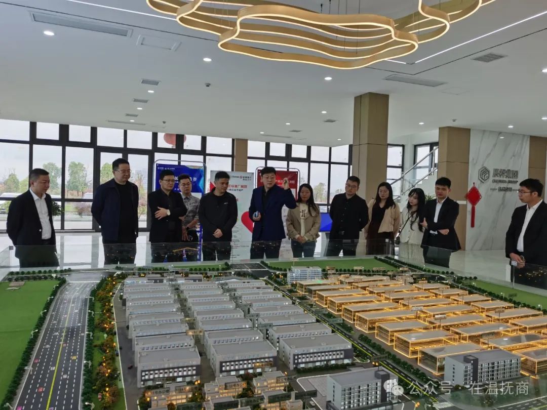 5日在会长喻新民的带领下,商会党支部书记、温州亿仕盾智能升降机械有限公司董事长黄旭华,监事长、温州乐邦网络科技工程有限公司董事长黄符生,常务副会长、温州青泉针织有限公司董事长兰水青,常务副会长、温州市宝华医疗器材有限公司董事长胡凯华,党支部副书记谷志红,会员企业家曾凡荣,谢小平和商会拟任执行秘书长戴欣等来到辰桦抚州智造园作投资考察,受到抚州市高新区主任尧刚、抚州市政府驻闽浙办主任吴国安、辰桦集团总经理王庚等领导的热情接待。抚州市高新区特别安排了“温州市抚州商会三请三回座谈会”。