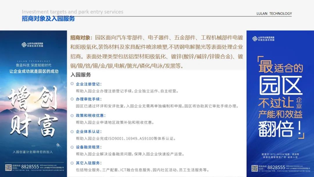 区域电镀产业聚集,上下游产业完备,产业基础雄厚,市场醇熟,周边基础建设加速奔现中,电镀作为五金产业链中不可或缺的一道工艺,随着五金产业的集群,电镀产业也在不断发展,山东华业鲁蓝表面科技生态示范园的建成,补齐了五金产业链中必不可缺的重要一环。入园企业可依托所在区域在产城融合、政策服务、金融服务等方面的厚植优势,实现上下游集聚,共建产业链条,携手加速资源整合,共聚强劲产业效应,推进全产业链的交流与合作。同时,受产业政策及区域政策辐射,入驻产业园,对企业的利好包括但不限于租金减免(同地段同品质,园区租金更低)、税收返还、人才 / 科研项目奖励、金融扶持等,以及政企对接、业务代办、专项补贴,省市级普惠政策倾斜等。
