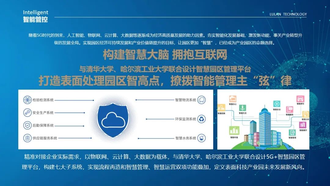 智能管理方面,园区精准对接企业实际需求,以物联网、云计算、大数据为载体,高标准建有智慧园区管理平台,构建七大子系统,系统具备智能安防、消防、能源管理、环保监测等功能,可实现水务、物流、后勤保障、安全生产、供应链服务、环保检测、检验检测等智慧化运营,实现企业自动化、可视化远程精准和即时防控管理,帮助入园企业管住人、车、设备、产线。