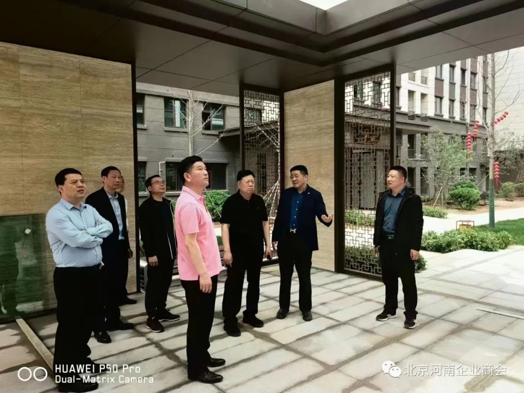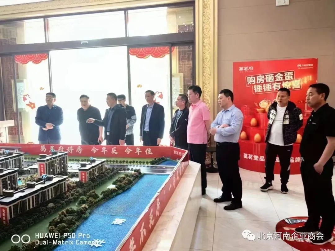 北京河南企业商会部分会长在商会王群生书记带领下来到孟州市走访参观“万茗府”。 参加此次活动的人员有:商会书记王群生,常务副会长兼秘书长李安民,轮值执行会长周胜利,轮值秘书长王彦斌,副会长高建涛,常务理事范军伟;四川省河南商会执行会长王杰率项目高管陪同。