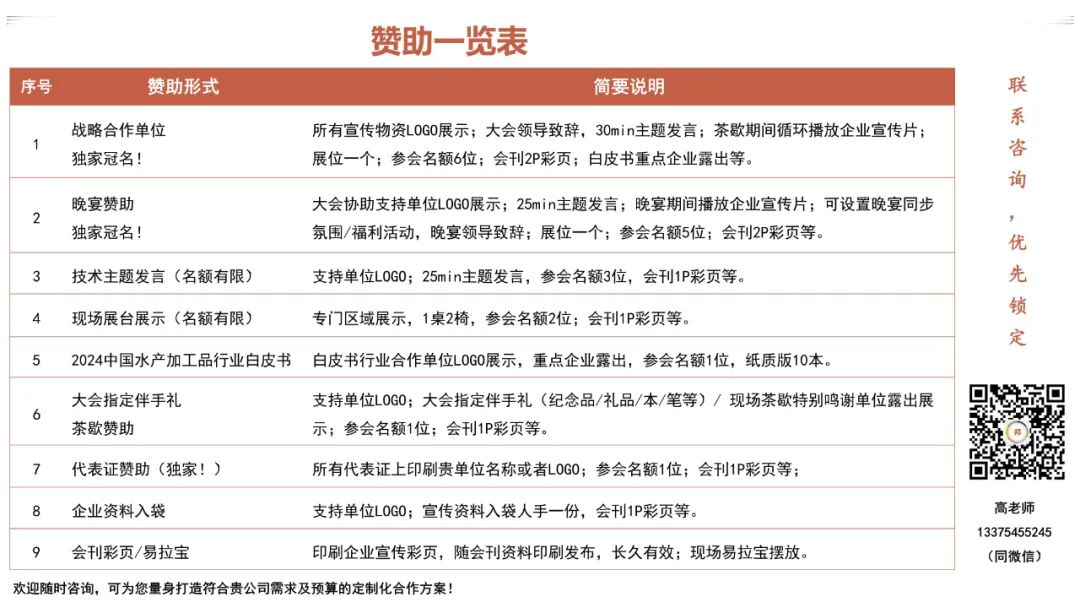 为助力高校院所的技术成果与企业技术需求有效对接,促进水产行业“产学研”结合,食品伙伴网水产项目组委会征集水产行业成熟可转化的应用型技术成果并筛选出优质成果在《2024中国水产加工品行业白皮书》中展示露出,通过线上推广、线下交流活动poster展示的方式,多渠道的服务于企业,解决企业技术难题,助推企业创新发展及技术成果落地。