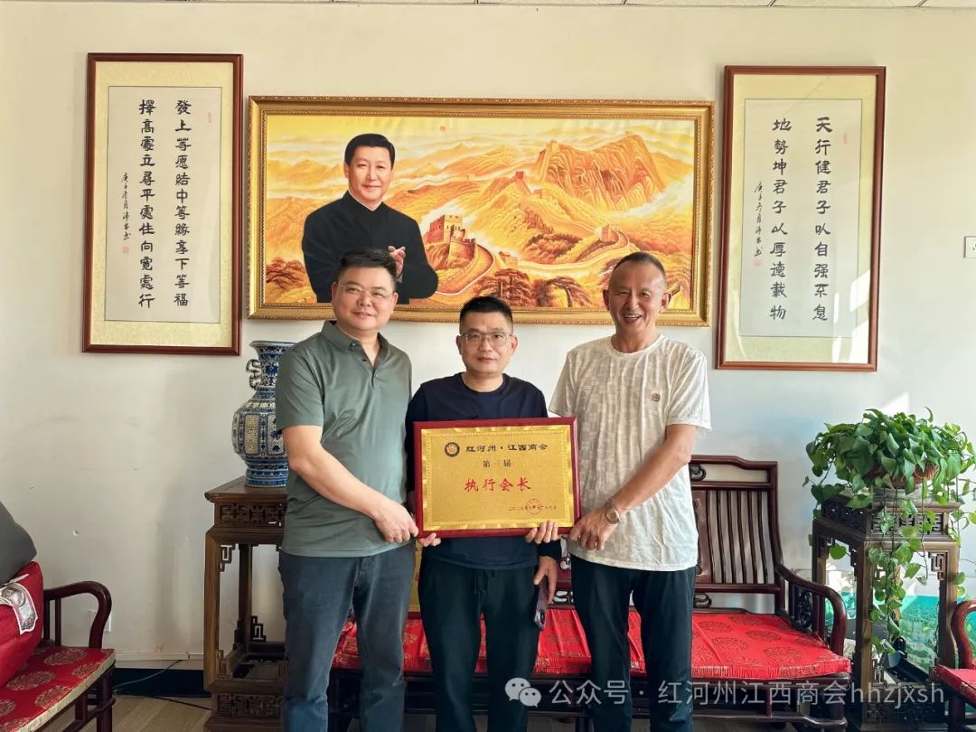 (吴连樟会长带领执行会长彭孙杰和轮值会长欧阳天旭为常务副会长熊伟授牌)