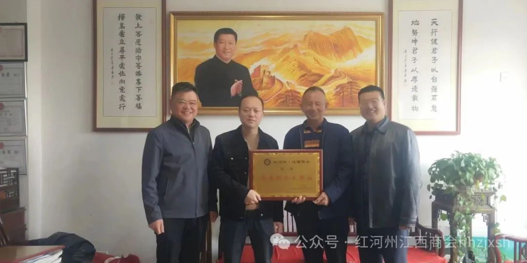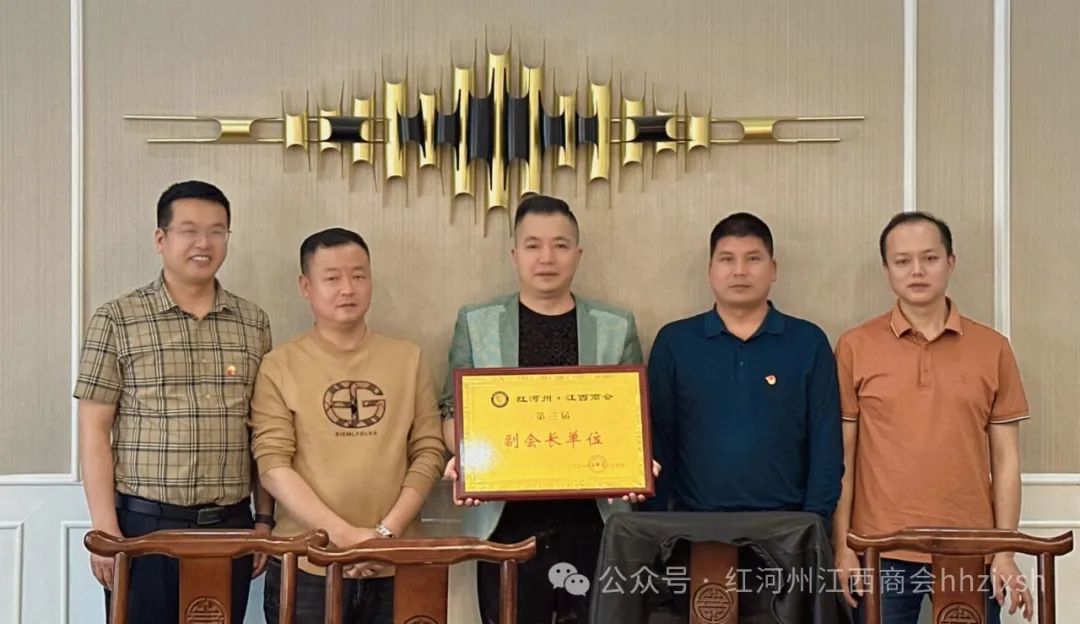 (执行会长彭孙杰、严昌平,理事长徐军平、轮值会长刘民平为副会长单位董氏建筑有限公司授牌)