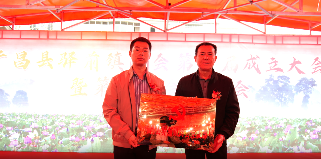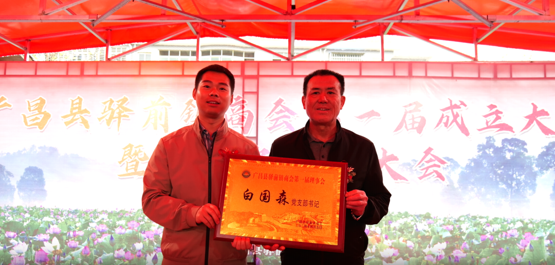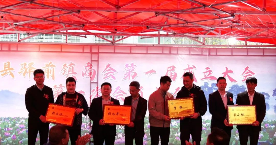 驿前镇部分党政班子成员共同为商会会长、支部书记、执行会长、常务副会长、副会长、监事、理事等进行了授牌。
