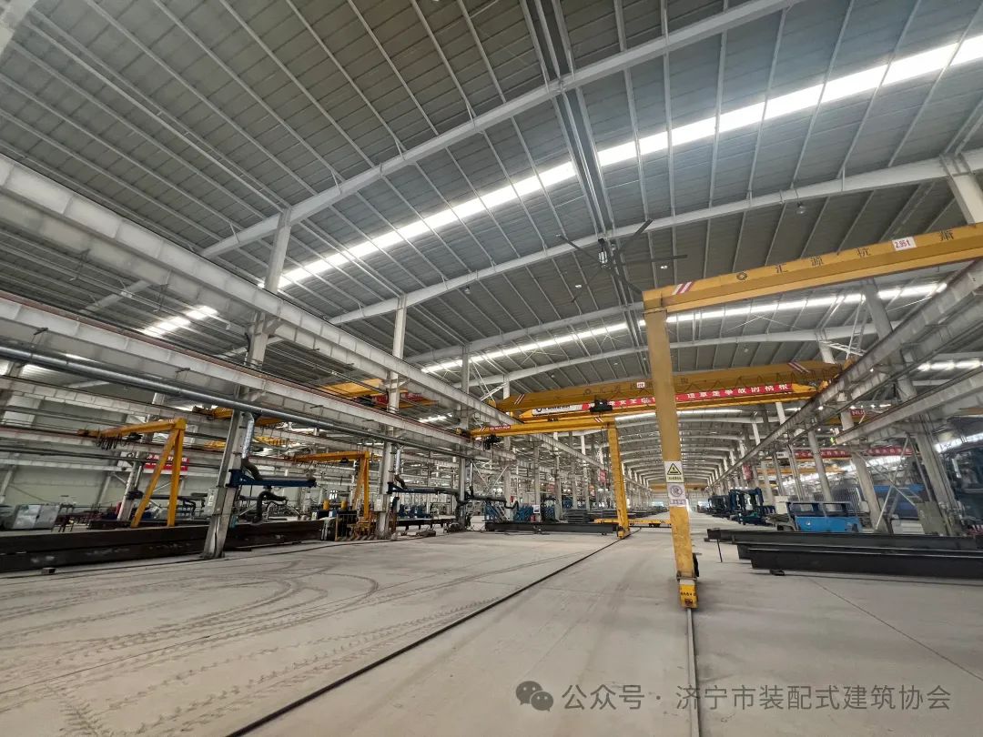 随后,考察团一行前往山东汇源杭萧钢构有限公司进行实地考察。汇源杭萧作为副会长单位,近年来在钢结构装配式建筑领域取得了显著成绩。公司副总经理徐备战亲自接待并引领参观了公司的钢结构加工车间、技术研发中心以及代表性工程项目模型,详尽阐述了汇源杭萧在钢结构设计、制造、安装全过程的智能化管理与服务模式,以及公司在推动建筑工业化、数字化转型方面的成功案例和未来规划。