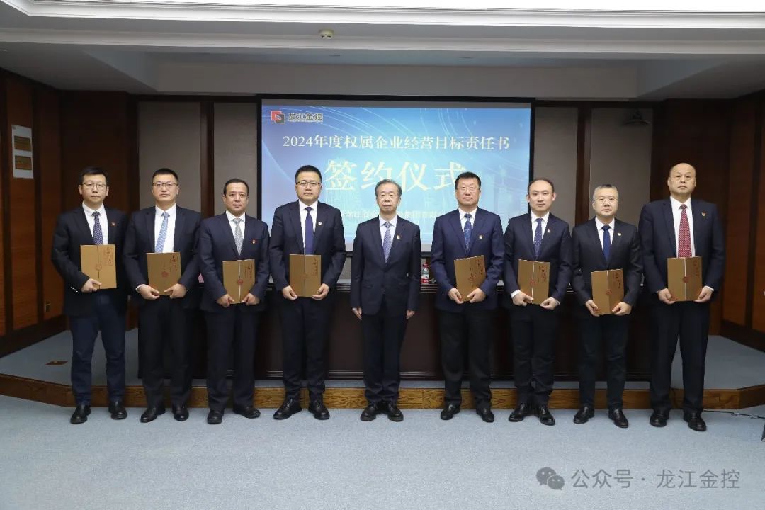 郎树峰指出,做强做优做大龙江金控需要靠大家的共同支撑,集团高质量发展的美好图景,正是由权属企业一个个“小目标”聚力而成。各权属企业要高度重视,不断增强市场竞争意识、责任意识和安全意识,确保任务目标再精准,执行力度再加强,扛牢压实主要负责人的任务,强化协同作战能力,提高经营管理质效。郎树峰强调,各权属企业要严格按照目标责任书要求,聚焦主责主业,层层压实责任,细化目标任务、强化目标责任,狠抓指标落实,营造“千斤重担人人挑,人人身上有指标”的良好氛围。同时建立健全科学的考核体系,并将考核结果与绩效挂钩,作为干部职务任免和员工晋升的重要依据,督促全体干部职工把指标作为工作目标,把压力作为工作动力,把责任作为工作使命,以实干争先的气魄和开局决胜的气势,全力确保目标任务兑现,合力交出2024年度目标任务的完美“答卷”。集团权属鑫正公司党委书记、董事长黎劲松代表签约企业作表态发言。他表示,鑫正公司将紧紧围绕省委省政府战略部署和省金控集团的总体安排,牢牢把握高质量发展主题,立足政府性融资担保职责定位,充分发挥在逆周期调节中的关键作用,锚定任务目标,狠抓责任落实,聚焦主责主业,紧盯重点领域,细化经营管理,强化党建引领,助推管理跃上新高度,奋力在服务全省经济社会发展大局中展现新作为、做出新贡献。下一步,鑫正公司将在省金控集团的坚强领导下,保持方向不偏、劲头不松、力度不减,奋力完成各项目标任务,向集团党委和全体员工交出一份满意的答卷。