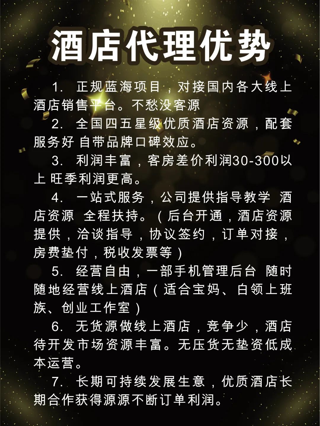 代理酒店不光可以赚钱,自己住酒店还可以省钱,还倍有面子!做与不做,了解没错!
