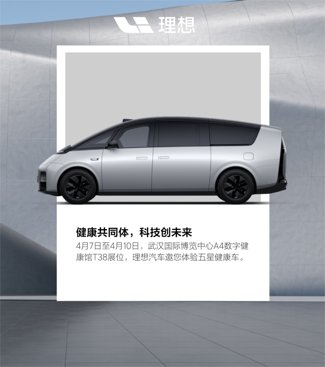 4月7日至4月10日,世界大健康博览会(简称健博会) 在湖北武汉国际博览中心举办。该展会是由国家卫健委、湖北省人民政府、武汉市人民政府主办,湖北省楚商联合会执行承办。展出面积10万平方米,共设置10个场馆,参展商1000余家,是全球范围内规模最大的相关主题展会。理想汽车作为特邀展商,携汽车健康联合研究中心认证的“五星健康车”亮相本次博览会,成为博览会上一道靓丽的风景线。