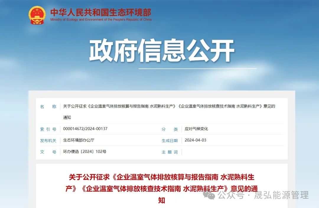 4月3日,生态环境部正式对外发布征求意见,就《企业温室气体排放核算与报告指南 水泥熟料生产》以及《企业温室气体排放核查技术指南 水泥熟料生产》两份文件,征求包括国家发展改革委在内的十七家单位的意见。
