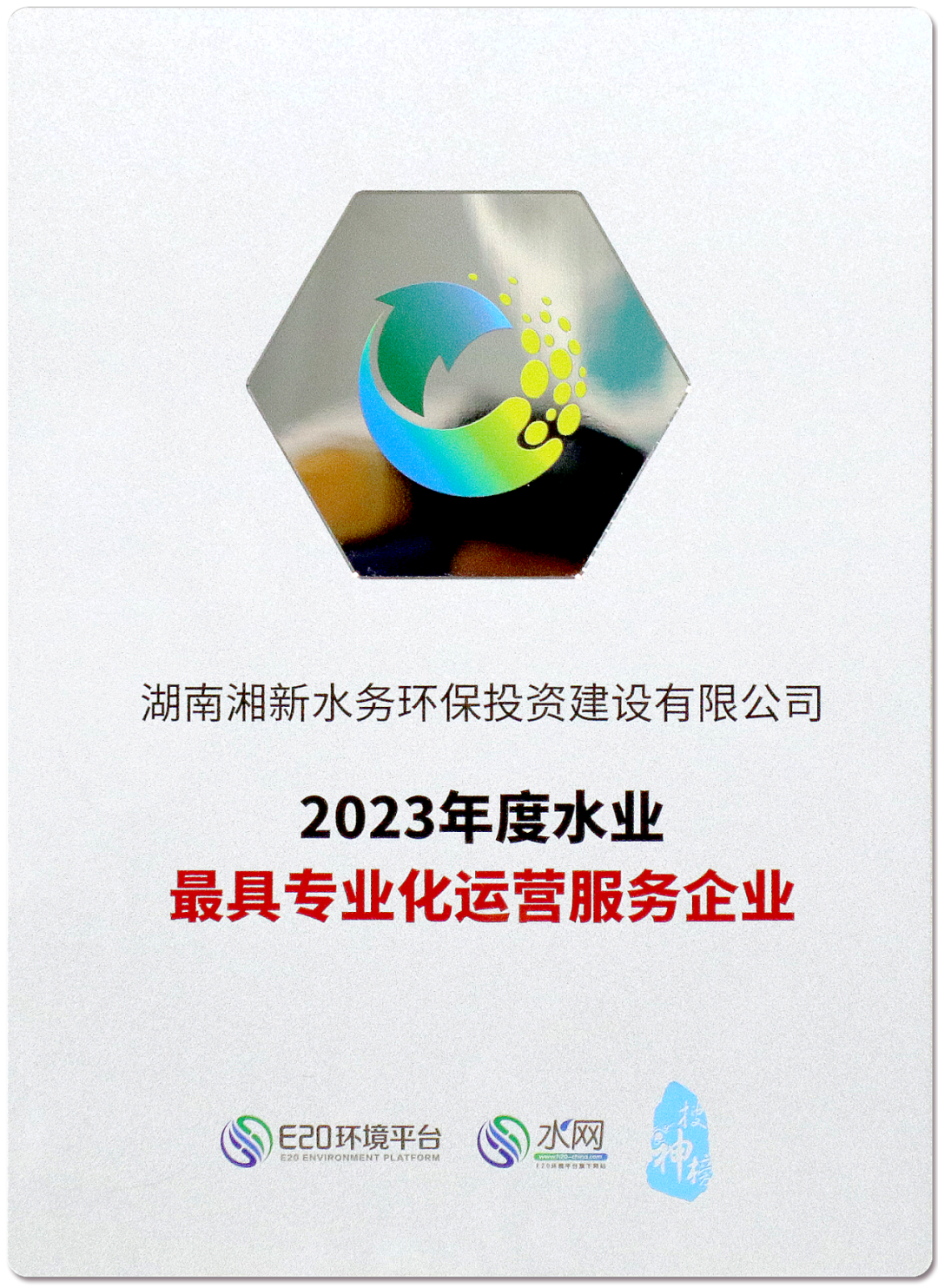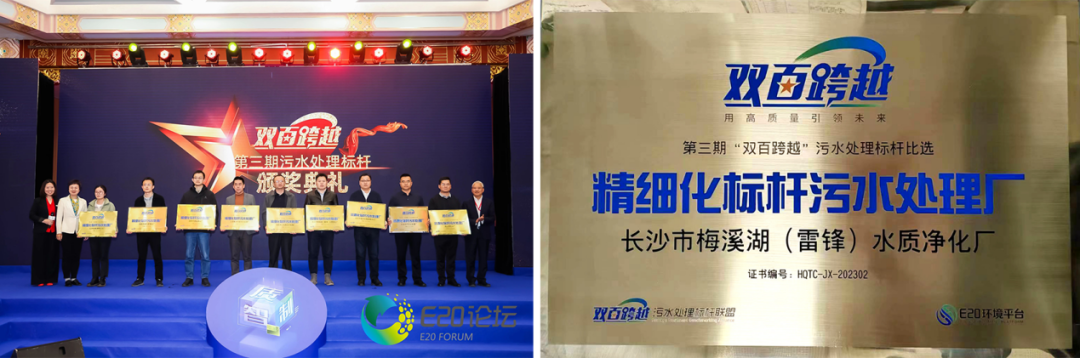 日前,由E20环境平台联合“双百跨越”污水处理标杆联盟主办的“2024(第二十二届)水业战略论坛”在北京开幕,论坛上揭晓了2023年度水业企业评选、水务行业优秀案例及“双百跨越”污水处理标杆比选(第三期)榜单。湘江集团湘新水务公司连续两年荣获“水业最具专业化运营服务企业”,旗下梅溪湖(雷锋)水质净化厂获评“双百跨越”精细化标杆污水处理厂。
