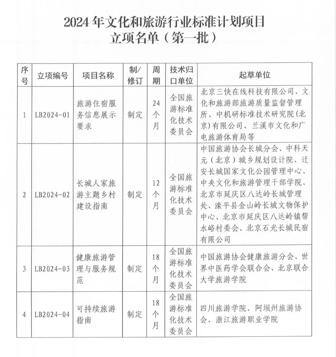 附件:2024年文化和旅游行业标准计划项目立项名单(第一批)