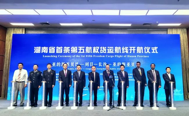 4月3日,湖南首条第五航权全货运航线“亚的斯亚贝巴-列日-长沙-亚的斯亚贝巴”开航仪式在长沙举行。航线的开通实现了“一线连三国通四洲”,是长沙机场打造面向非洲和欧洲的特色航空门户的重要举措。