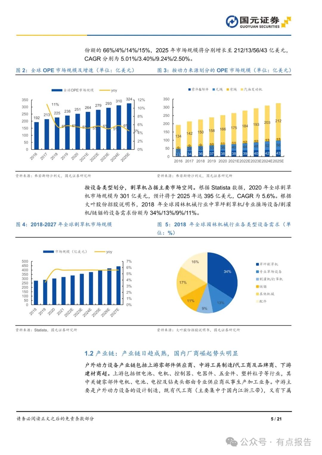 户外动力设备(OPE)即以户外为主要应用场景的装置设备,属于动力工具的一种,多用于草坪、花园或庭院维护。2020 年全球市场规模为 251 亿美元,预计将于 2025 年达 324 亿美元。