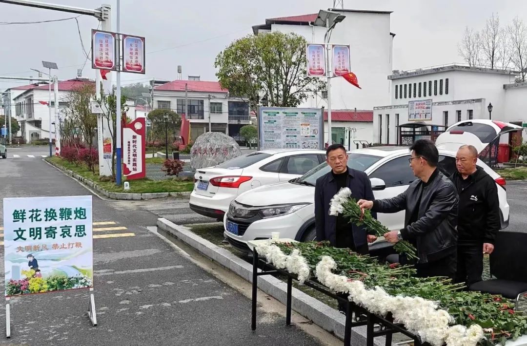 4月4日至7日,四庄乡开展“鲜花换鞭炮 文明寄哀思”移风易俗活动,在辖区设置13个宣传点,由党员干部轮番值守,向过往群众宣传文明祭祀和森林防火有关规定,引导群众将祭扫的鞭炮免费换成洁白鲜花,用环保的方式缅怀先人。