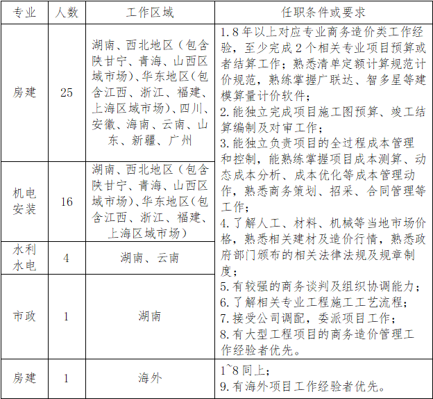 3.证件要求:工程造价及招聘对应专业中级及以上职称或二级造价师,注册一级造价师可以优先考虑。