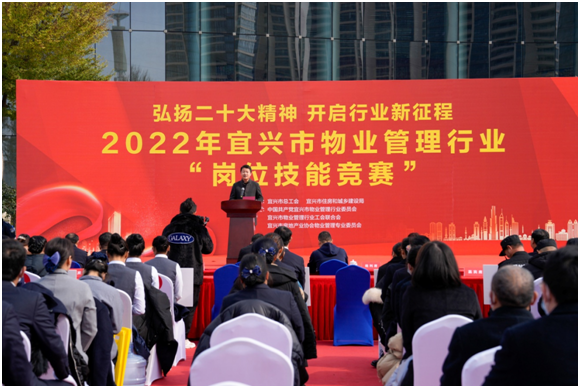 12月11日,2022年宜兴市物业管理行业岗位技能竞赛在市文化中心广场隆重举行。宜兴市总工会、宜兴市住建局、中共宜兴市物业管理行业委员会、宜兴市物业管理行业工会联合会、宜兴市物业管理专业委员会相关领导出席本次竞赛活动。