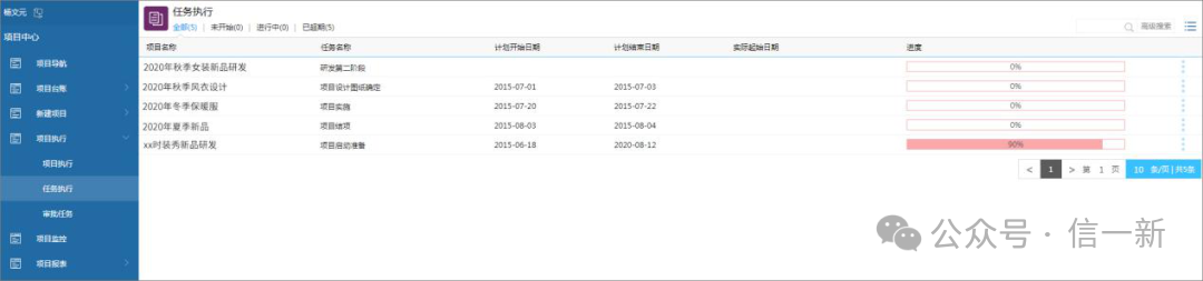通过流程发起新项目,填入项目、计划等基本信息,审批通过后自动归入项目台账,项目进度清晰可查。