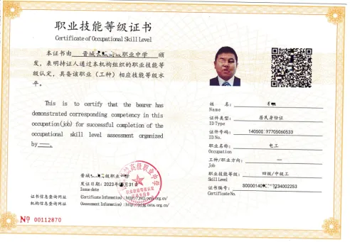 本证书是国家技能等级证书,由人社局授权第三方机构颁发证书,全国通用,全网可查,终身有效。