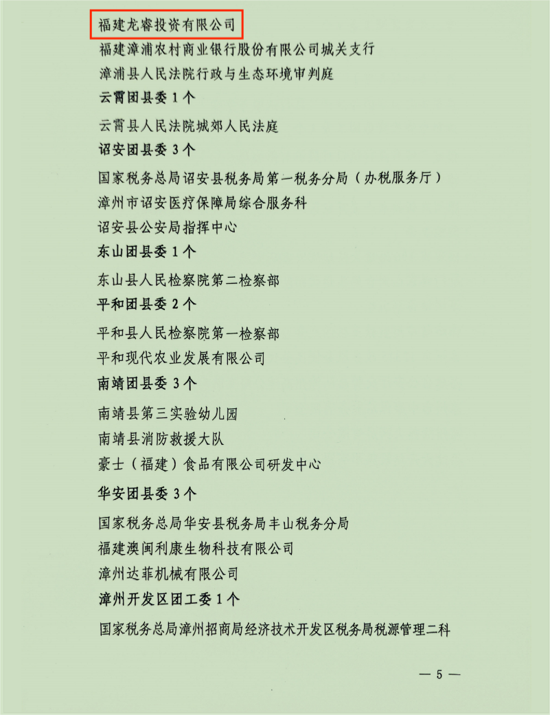 近年来,福建龙睿有限公司把“青年文明号”创建作为引领青年奋斗的重要载体,通过开展青年号学习培训活动、青年岗位示范岗等创建活动,引导青年磨炼本领,做出业绩,成为促进青年成长、弘扬文明风尚的一面青春旗帜。截至目前,公司35周岁及以下青年干部职工共获得各类职称19个,近两年获得县级以上表彰9次,创建实践及成效在省级以上主流媒体报道6次,在市级以上主流媒体报道11次。